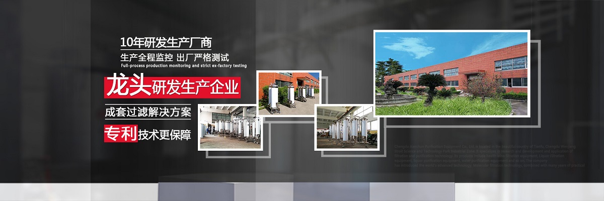 成都愛爾純凈化設備有限公司,坐落于美麗的天府之國,成都市溫江區(qū)海峽科技園工業(yè)區(qū),專業(yè)從事于過濾、凈化技術(shù)的研發(fā)應用,產(chǎn)品有保健酒過濾設備、白酒過濾設備、白酒凈化設備、水凈化設備等,公司引進世界先進過濾分子技術(shù),結(jié)合專業(yè)技術(shù)人員資深多年實踐經(jīng)驗,解決酒類、飲水類后期處理難題。 業(yè)務涵蓋,酒類過濾:除混濁沉淀,澄清處理、除苦味,異雜味,新酒催熟陳化處理 、除塑化劑、固形物、雜醇油、甲醇及各類含量超標后期處理。 水類:軟水、純凈水、礦泉水、飲料等凈化處理。用心為客戶提高生產(chǎn)效率、提高產(chǎn)品質(zhì)量、降低生產(chǎn)成本、環(huán)保減排而開發(fā)創(chuàng)新,堅持奮斗。 公司至誠每一位客戶,“誠信服務,客戶至上”為宗旨,為客戶要求,用心凈化每一點滴,我們都將以精準的數(shù)據(jù)化設計、嚴格的設備制作質(zhì)量把關(guān)、快捷專業(yè)的安裝調(diào)試以及周到的售后服務,解決客戶生產(chǎn)過程中遇見的各種酒、水后期處理的技術(shù)難題。